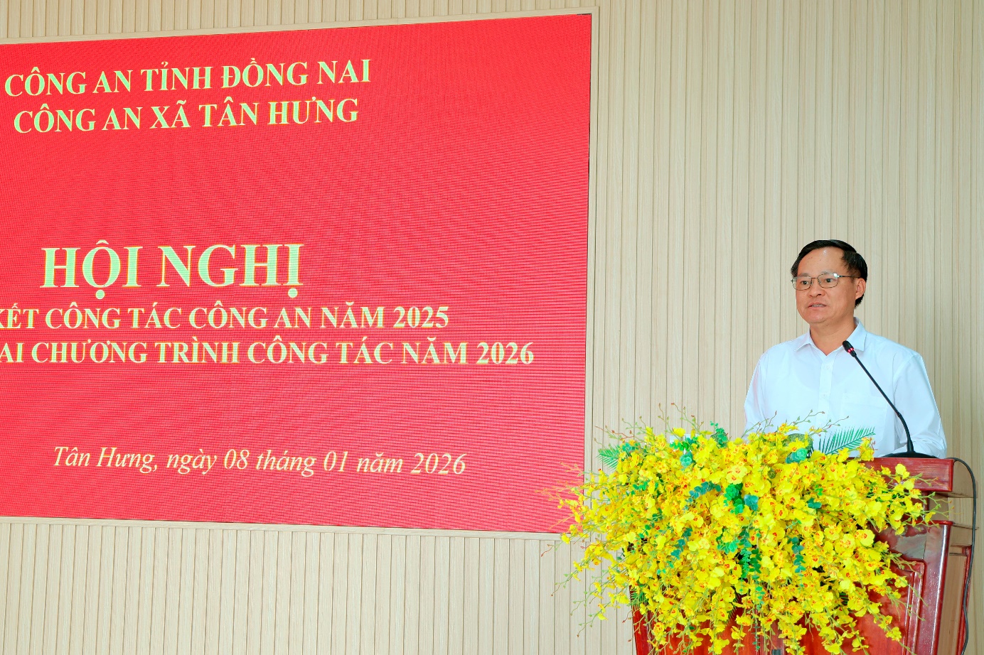 Sáng ngày 08/01, Công an xã Tân Hưng, tỉnh Đồng Nai tổ chức Hội nghị tổng kết công tác Công an năm 2025 và triển khai nhiệm vụ công tác năm 2026. Dự và chỉ đạo hội nghị có Đại tá Nguyễn Huy Hải – Ủy viên Ban Thường vụ, Phó Giám đốc Công an tỉnh; đồng chí Mạc Đình Huấn – Bí thư Đảng ủy, Chủ tịch HĐND xã; đồng chí Nguyễn Vũ Tiến – Phó Bí thư Đảng ủy, Chủ tịch UBND xã; lãnh đạo các phòng, ban chuyên môn của xã; cùng cán bộ, chiến sĩ Công an xã và lực lượng an ninh trật tự cơ sở.