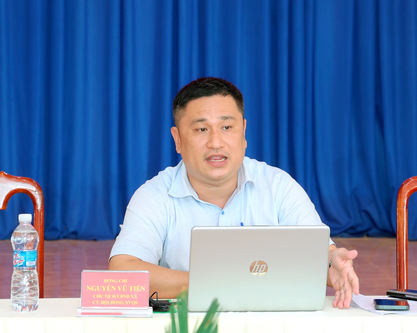 Tham dự hội nghị có đồng chí Nguyễn Vũ Tiến – Phó Bí thư, Chủ tịch UBND xã, Chủ tịch Hội đồng NVQS xã; Phó Chỉ huy trưởng Ban Chỉ huy Quân sự xã; cùng các đồng chí là thành viên Hội đồng NVQS, đại diện Công an, Trạm Y tế và các phòng chuyên môn, đoàn thể của xã.