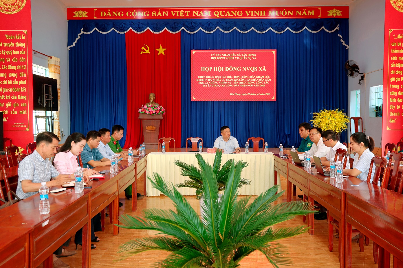 Sáng 2/12/2025, Hội đồng Nghĩa vụ quân sự (NVQS) xã Tân Hưng đã tổ chức hội nghị triển khai công tác điều động công dân khám sức khỏe NVQS và nghĩa vụ tham gia Công an nhân dân năm 2026.