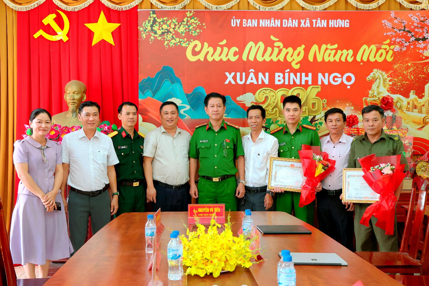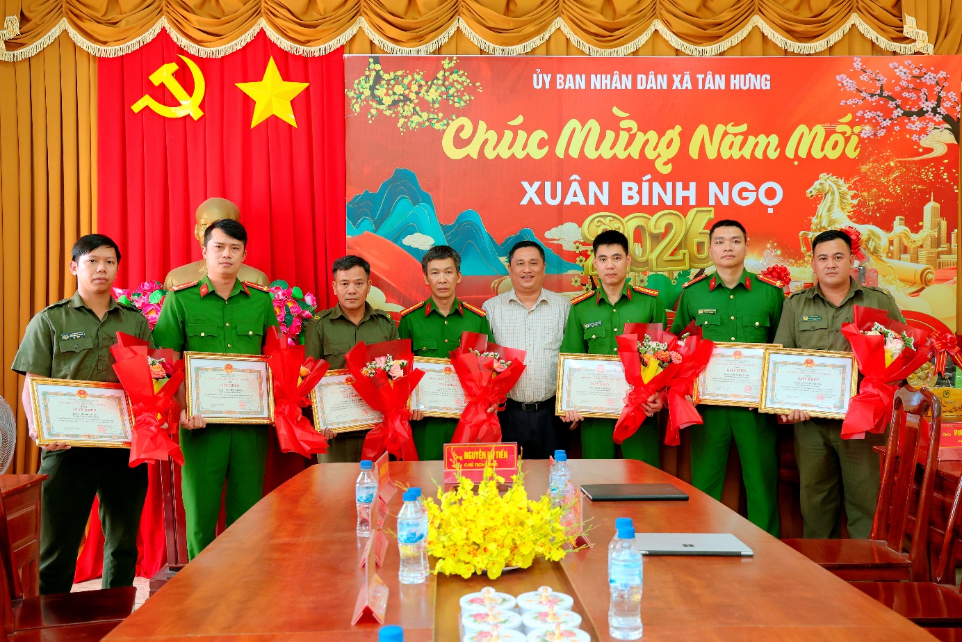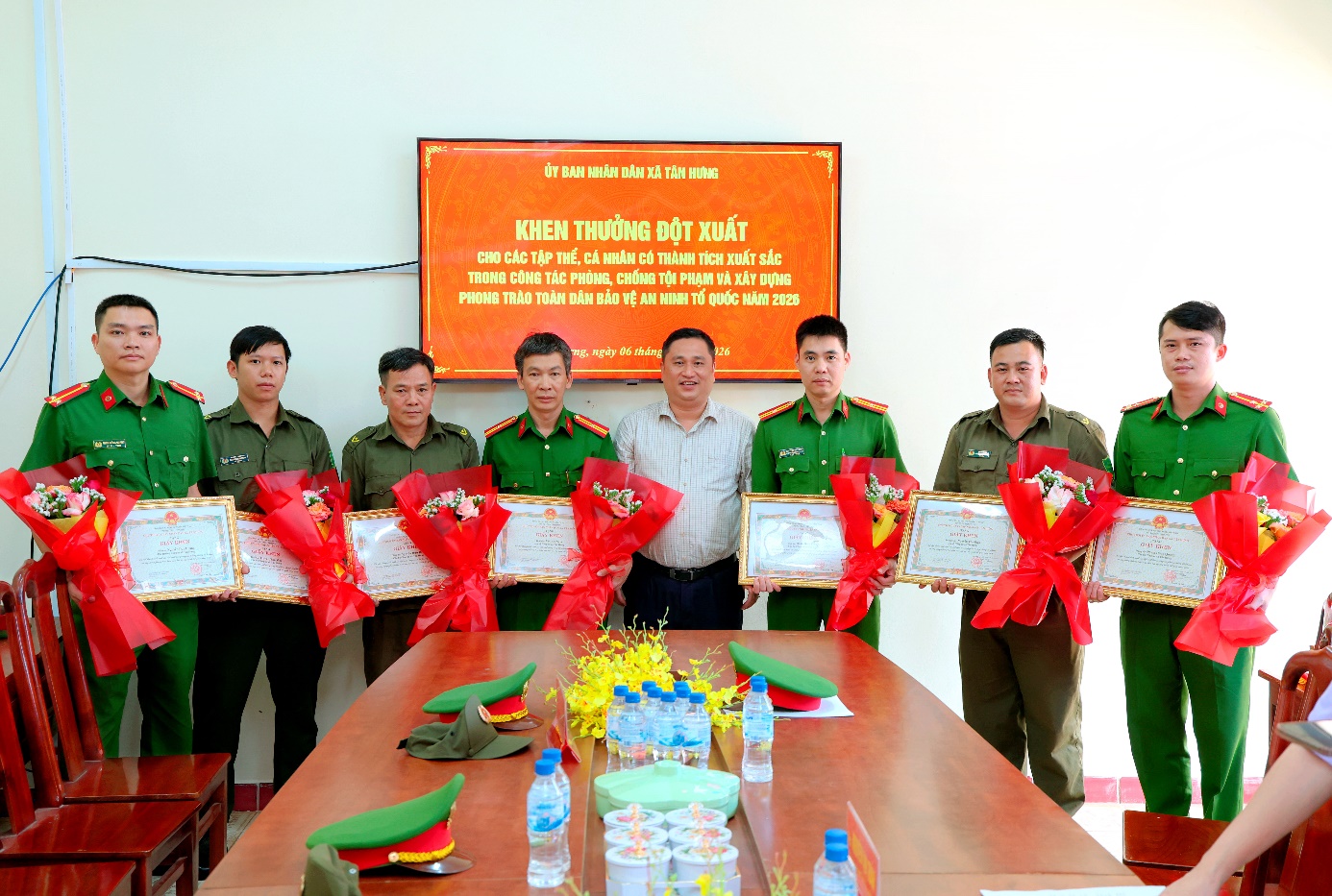 Trước thành tích, chiến công của cán bộ, chiến sĩ công an xã, Chủ tịch UBND xã Tân Hưng đã ký Quyết định khen thưởng đột xuất cho tập thể, và cá nhân Công an xã Tân Hưng đã có thành tích xuất sắc trong công tác phòng, chống tội phạm và xây dựng phong trào toàn dân bảo vệ an ninh tổ quốc năm 2026