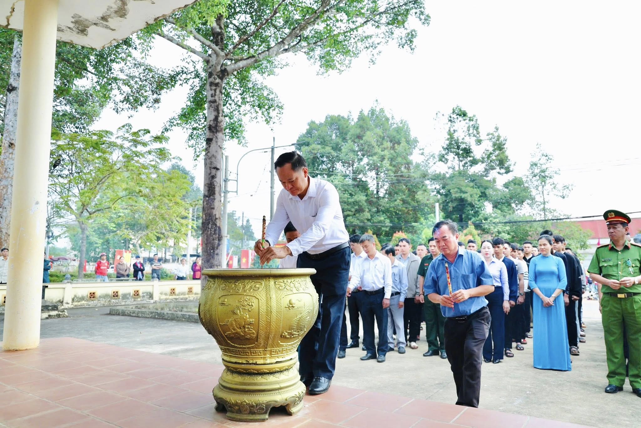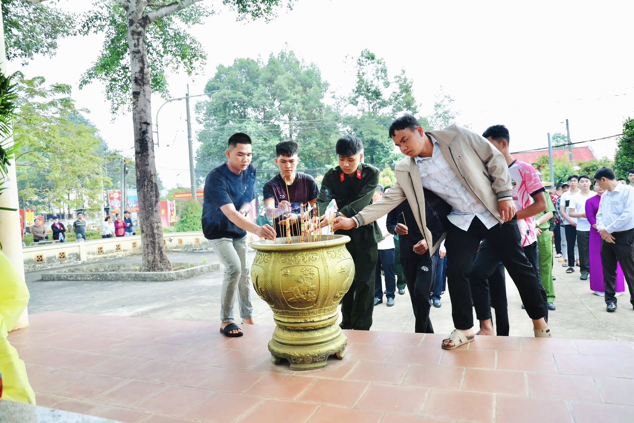 Trong không khí trang nghiêm và thành kính, các đại biểu cùng thanh niên chuẩn bị nhập ngũ đã dâng hương, dành phút mặc niệm tưởng nhớ công lao to lớn của Chủ tịch Hồ Chí Minh, các Mẹ Việt Nam Anh hùng và các anh hùng liệt sĩ đã anh dũng hy sinh vì nền độc lập, tự do của Tổ quốc.