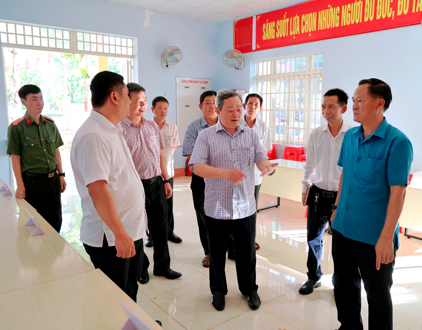 Tại các điểm đến, đoàn công tác đã trực tiếp kiểm tra việc chuẩn bị cơ sở vật chất, công tác khánh tiết, trang trí; tiến độ niêm yết danh sách cử tri, danh sách người ứng cử; đồng thời rà soát kỹ lưỡng các phương án bảo đảm an ninh trật tự, phòng cháy chữa cháy và các điều kiện phục vụ Nhân dân trong ngày bầu cử.
