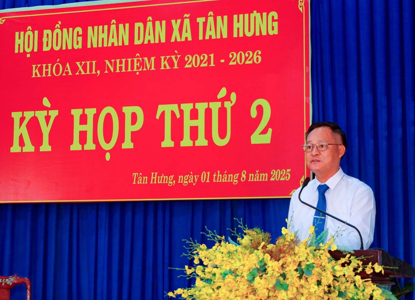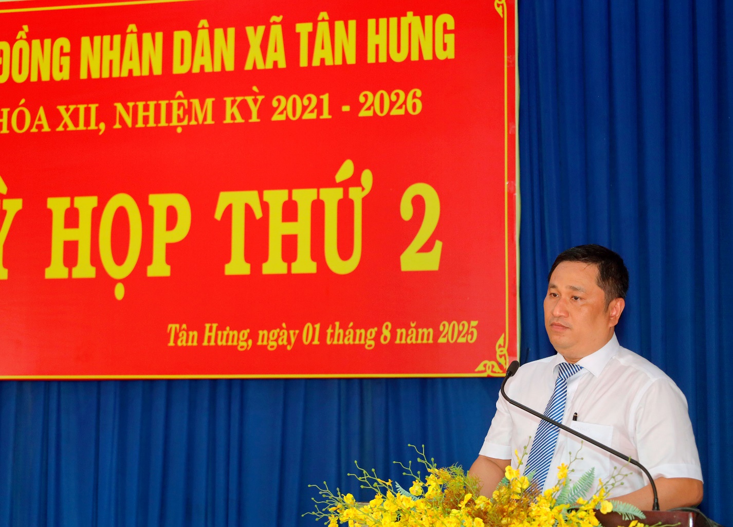 Sáng 01/8, HĐND xã Tân Hưng tổ chức kỳ họp thứ 2, kỳ họp giữa năm 2025 nhằm đánh giá kết quả thực hiện nhiệm vụ phát triển kinh tế – xã hội 6 tháng đầu năm, triển khai phương hướng 6 tháng cuối năm và xem xét, quyết nghị nhiều nội dung quan trọng theo luật định.