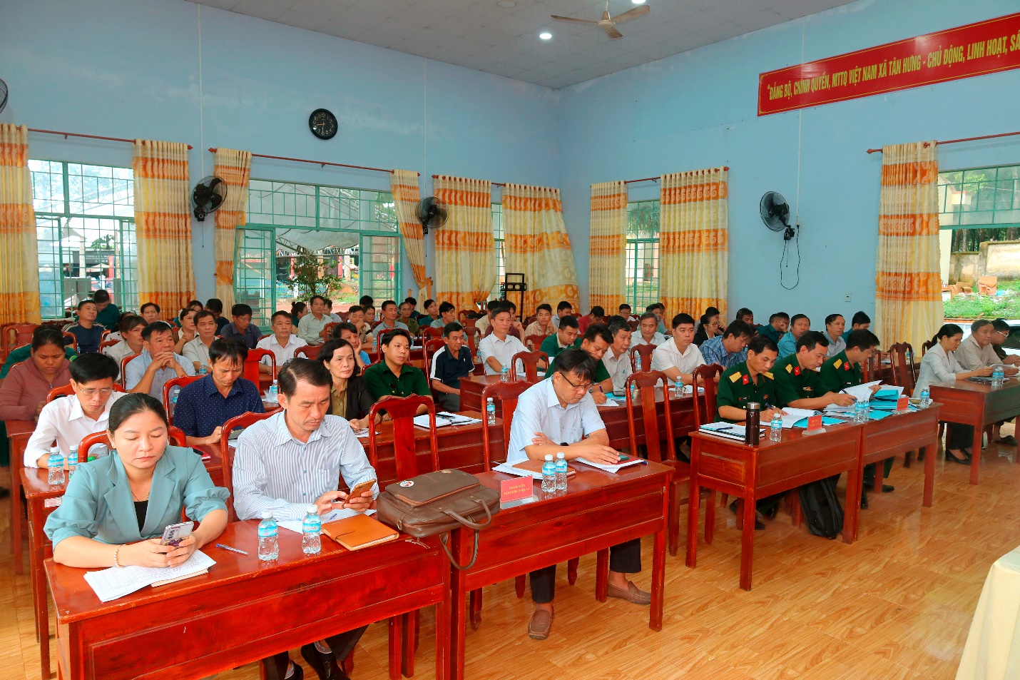 Dự hội nghị có ông Nguyễn Vũ Tiến – Chủ tịch UBND xã, Chủ tịch Hội đồng NVQS xã; Trung tá Hà Xuân Lê, Phó Trưởng Ban Quân lực Bộ Chỉ huy Quân sự Tỉnh; các thành viên Hội đồng NVQS xã, cùng Bí thư Chi bộ, Trưởng các ấp, sóc trên địa bàn.