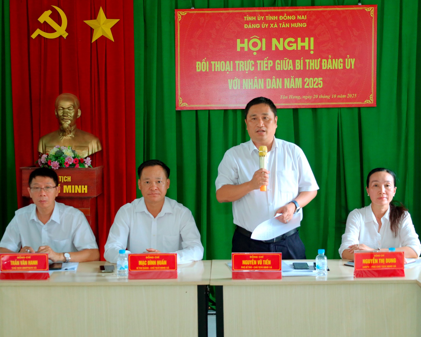 Chiều 20/10/2025, tại Nhà văn hóa ấp 3, Đảng ủy xã Tân Hưng tổ chức Hội nghị đối thoại trực tiếp giữa Bí thư Đảng ủy với Nhân dân.