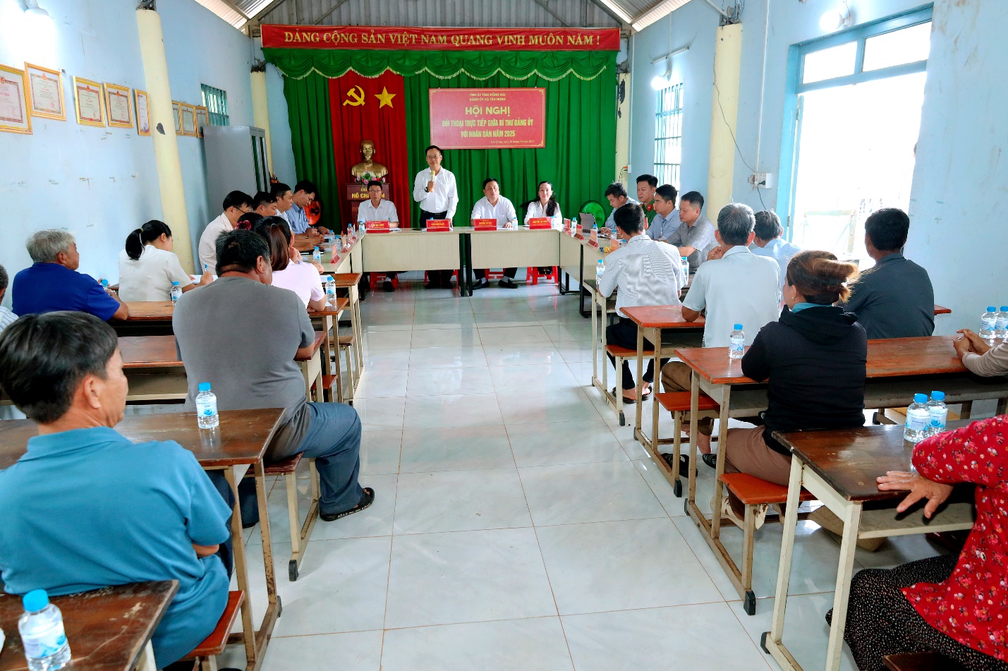 Tại buổi đối thoại, lãnh đạo xã đã trực tiếp lắng nghe 13 lượt ý kiến của Nhân dân về các vấn đề như: phát quang, khơi thông kênh mương nội đồng; chuyển đổi mục đích sử dụng đất; công tác bồi thường, hỗ trợ sản xuất nông nghiệp; bảo hiểm y tế cho đồng bào dân tộc thiểu số; và tình hình an ninh trật tự, tệ nạn xã hội trên địa bàn.