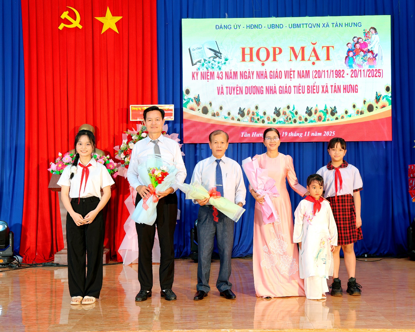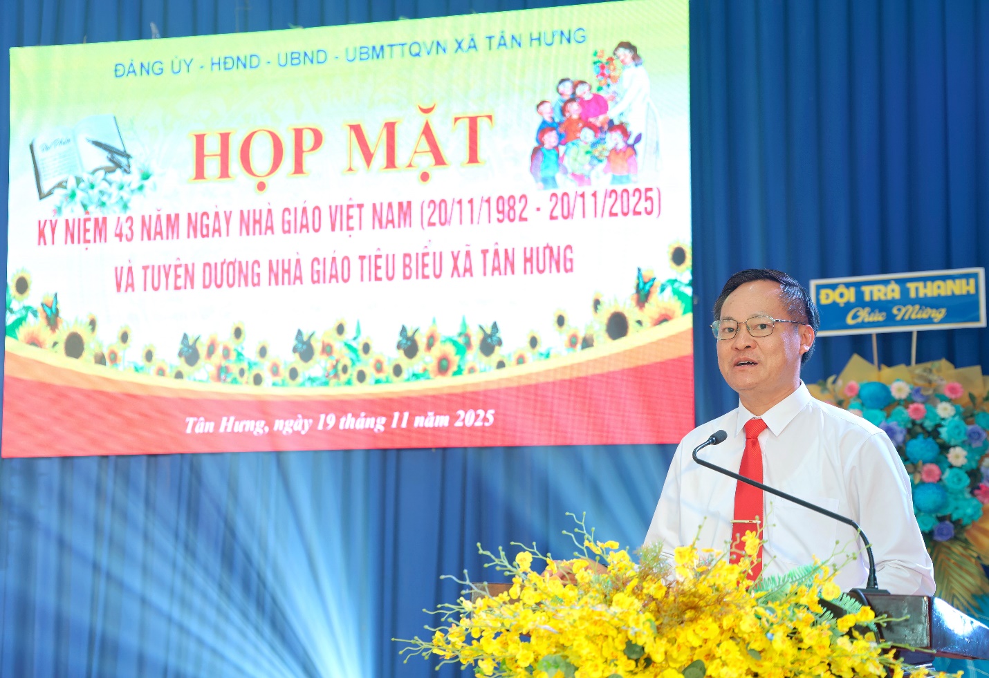 Tại buổi lễ, các đại biểu đã ôn lại truyền thống “tôn sư trọng đạo” của dân tộc, tri ân những đóng góp to lớn của đội ngũ nhà giáo qua các thời kỳ. Truyền thống hiếu học của xã Tân Hưng được gây dựng từ nhiều thế hệ thầy cô tận tâm, trong đó có những giáo viên đã dành trọn đời cống hiến cho sự nghiệp trồng người.