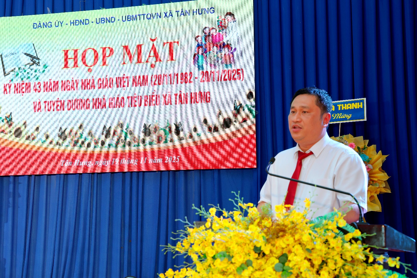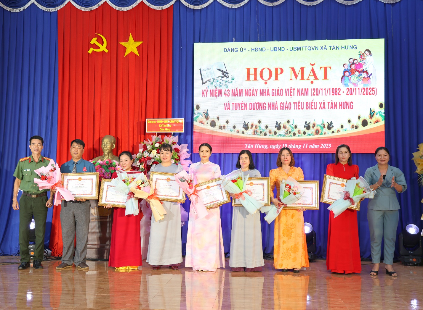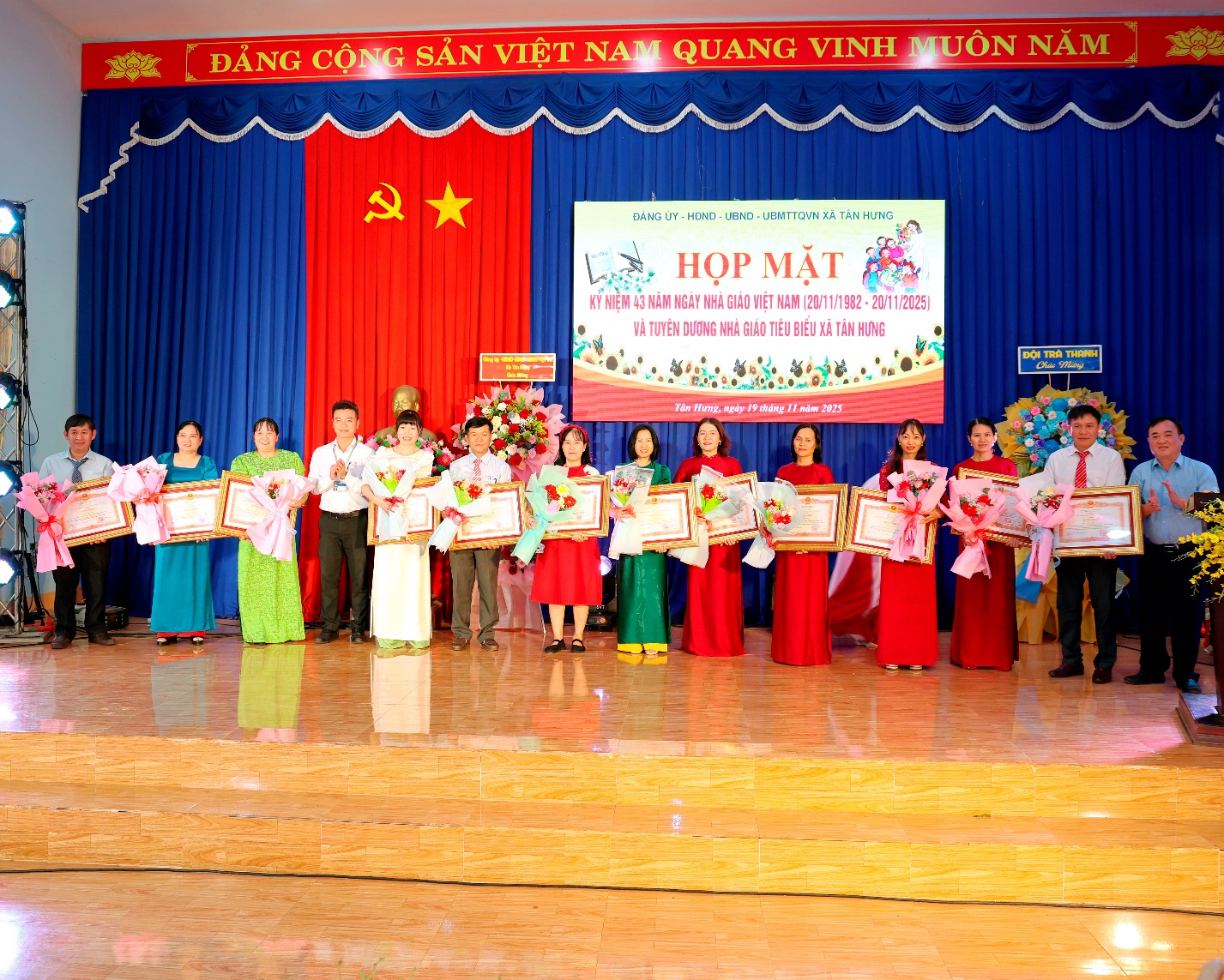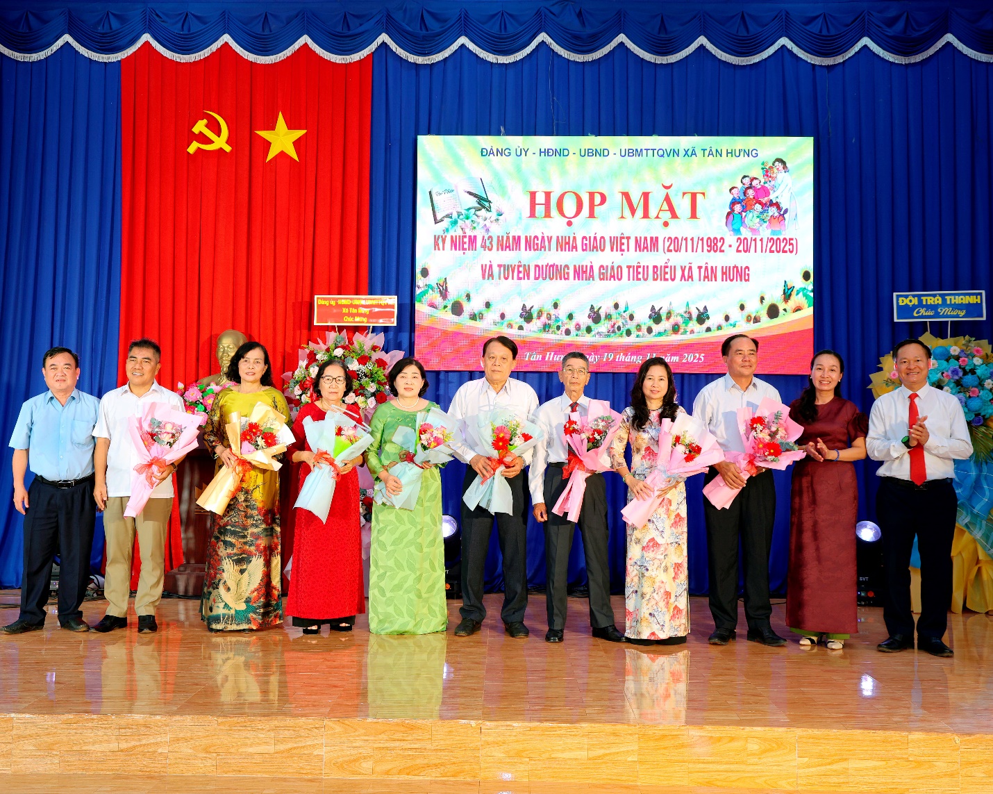 Chiều ngày 19/11, UBND xã Tân Hưng tổ chức Họp mặt kỷ niệm 43 năm Ngày Nhà giáo Việt Nam và tuyên dương nhà giáo tiêu biểu năm học 2024–2025.
