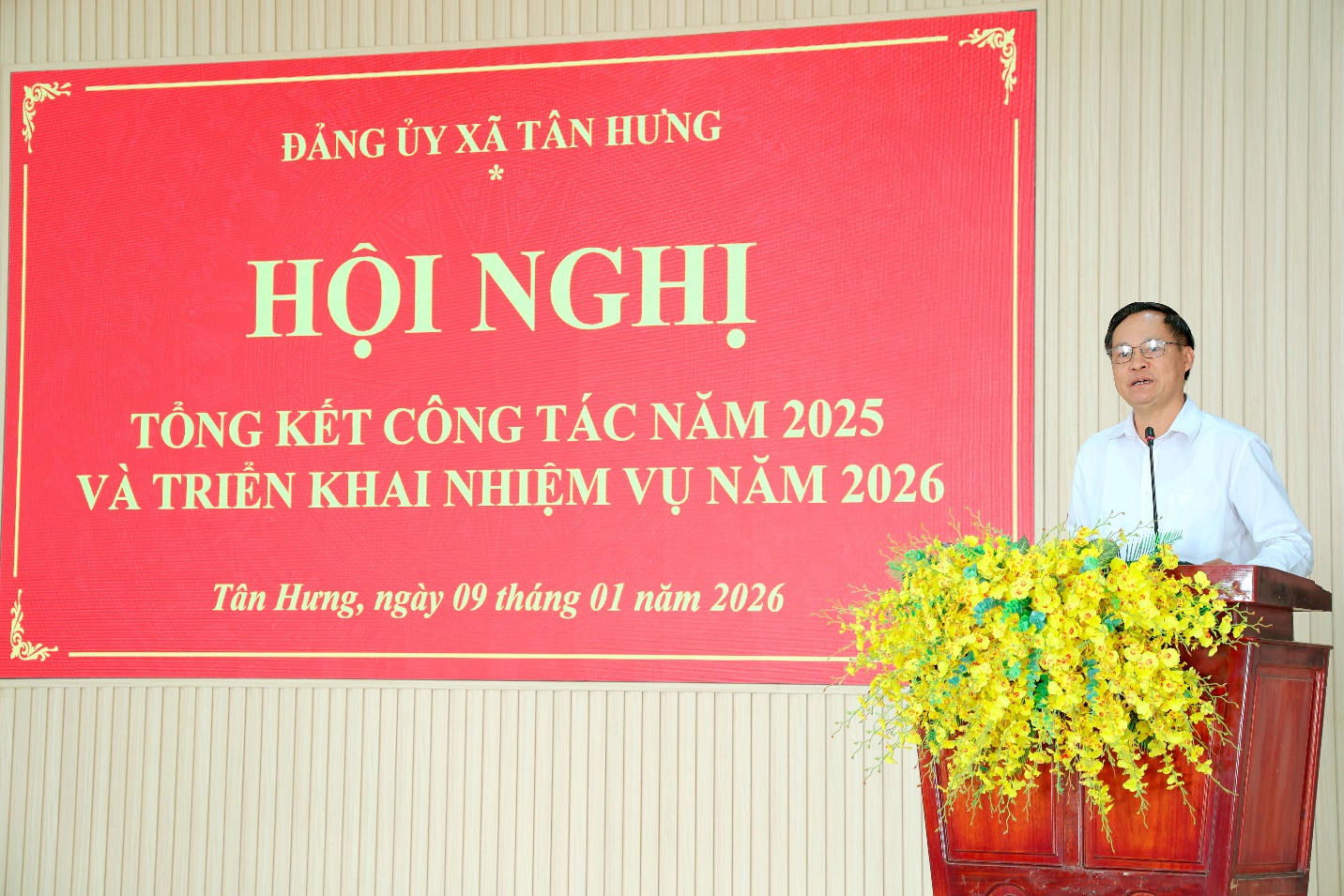 Sáng ngày 09/01/2025, Đảng ủy xã Tân Hưng tổ chức Hội nghị tổng kết công tác năm 2025 và triển khai nhiệm vụ năm 2026.