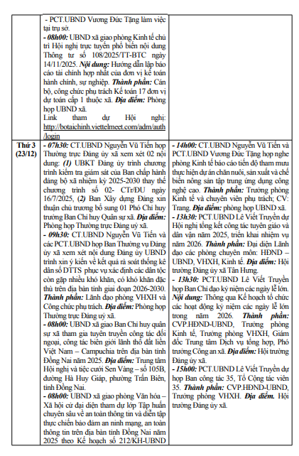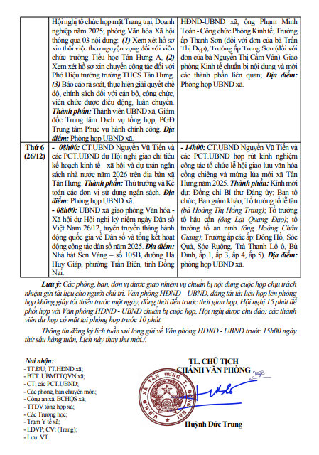 Tuần 52 năm 2025 (từ ngày 22/12 đến ngày 26/12/2025)