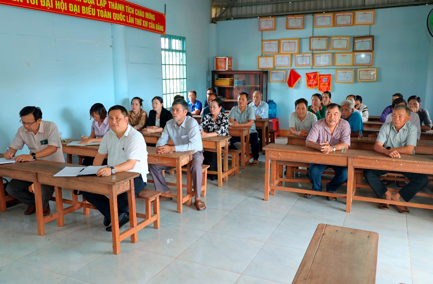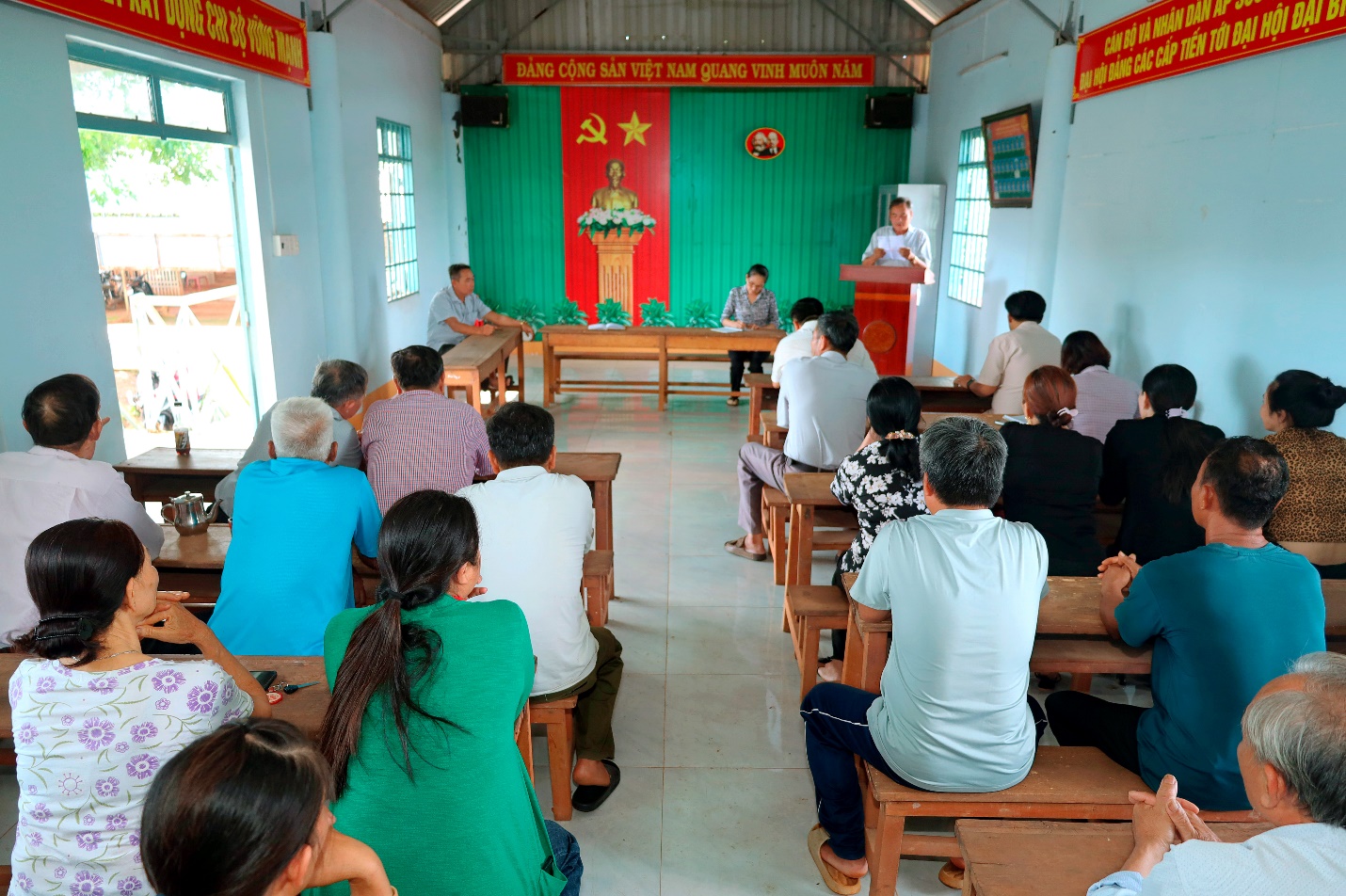Các đại biểu tham dự buổi tiếp xúc với cử tri ấp Sóc Quả, xã Tân Hưng
