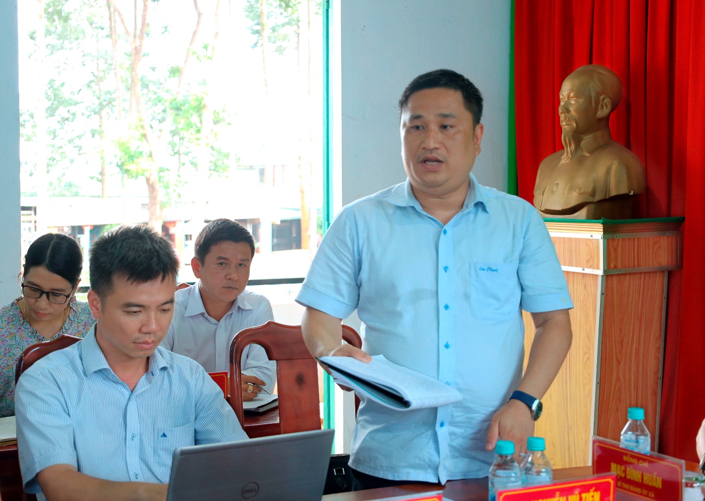 Ông Nguyễn Vũ Tiến, Phó Bí thư – Chủ tịch UBND xã Tân Hưng báo cáo nhanh tại buổi làm việc