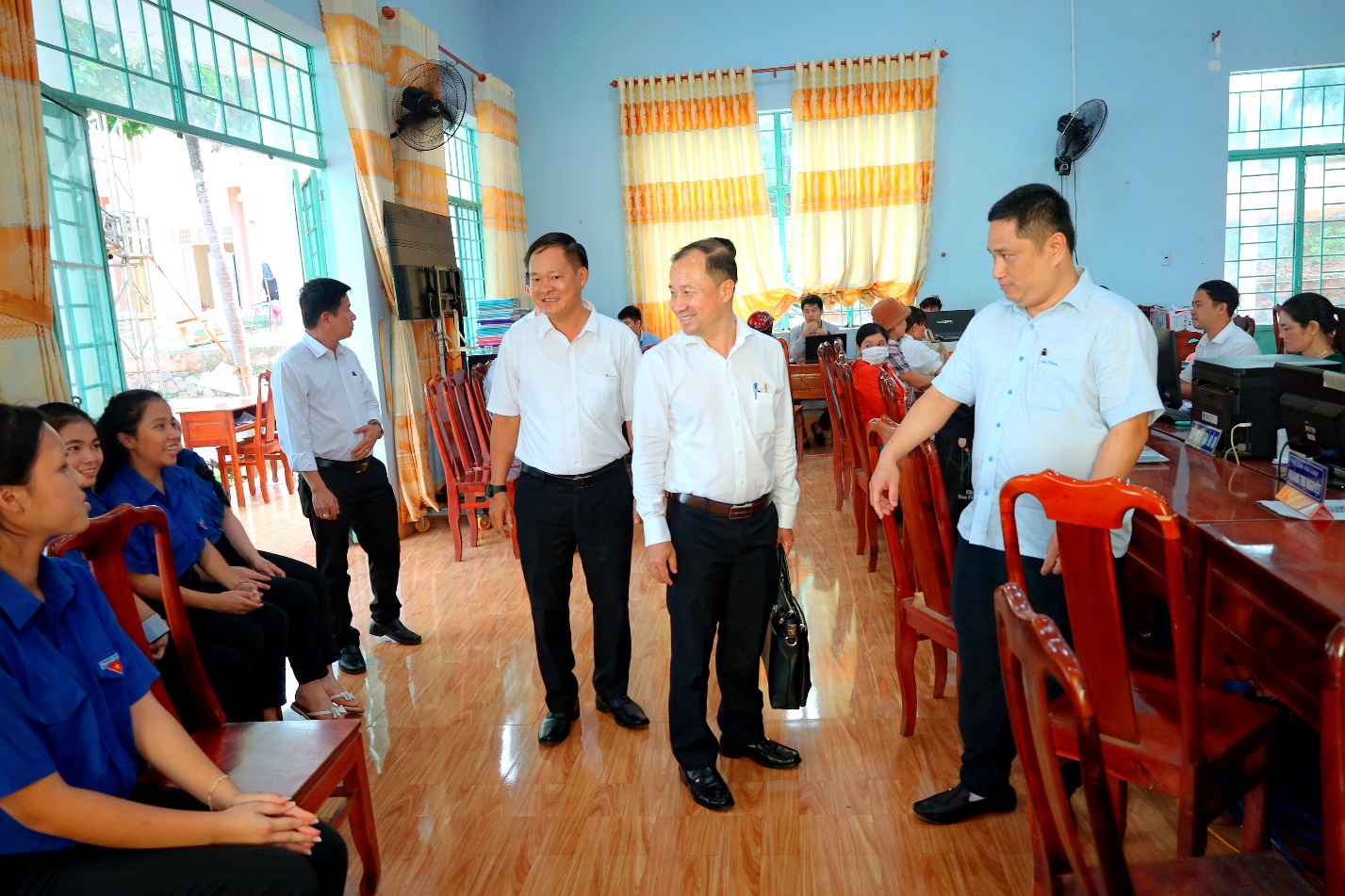 Thành viên đoàn tham quan các phòng làm việc của xã