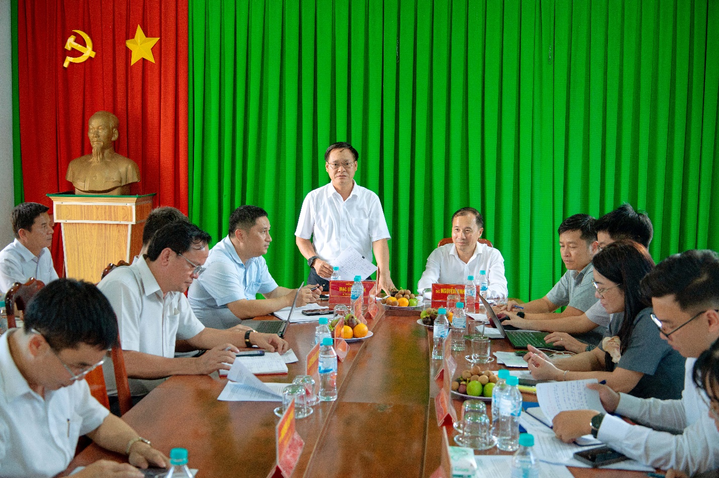 Về phía xã Tân Hưng, tham dự buổi làm việc có đồng chí Mạc Đình Huấn – Bí thư Đảng ủy, Chủ tịch HĐND xã; đồng chí Nguyễn Vũ Tiến – Phó Bí thư, Chủ tịch UBND xã, cùng các đồng chí lãnh đạo UBND và trưởng các phòng chuyên môn trực thuộc.