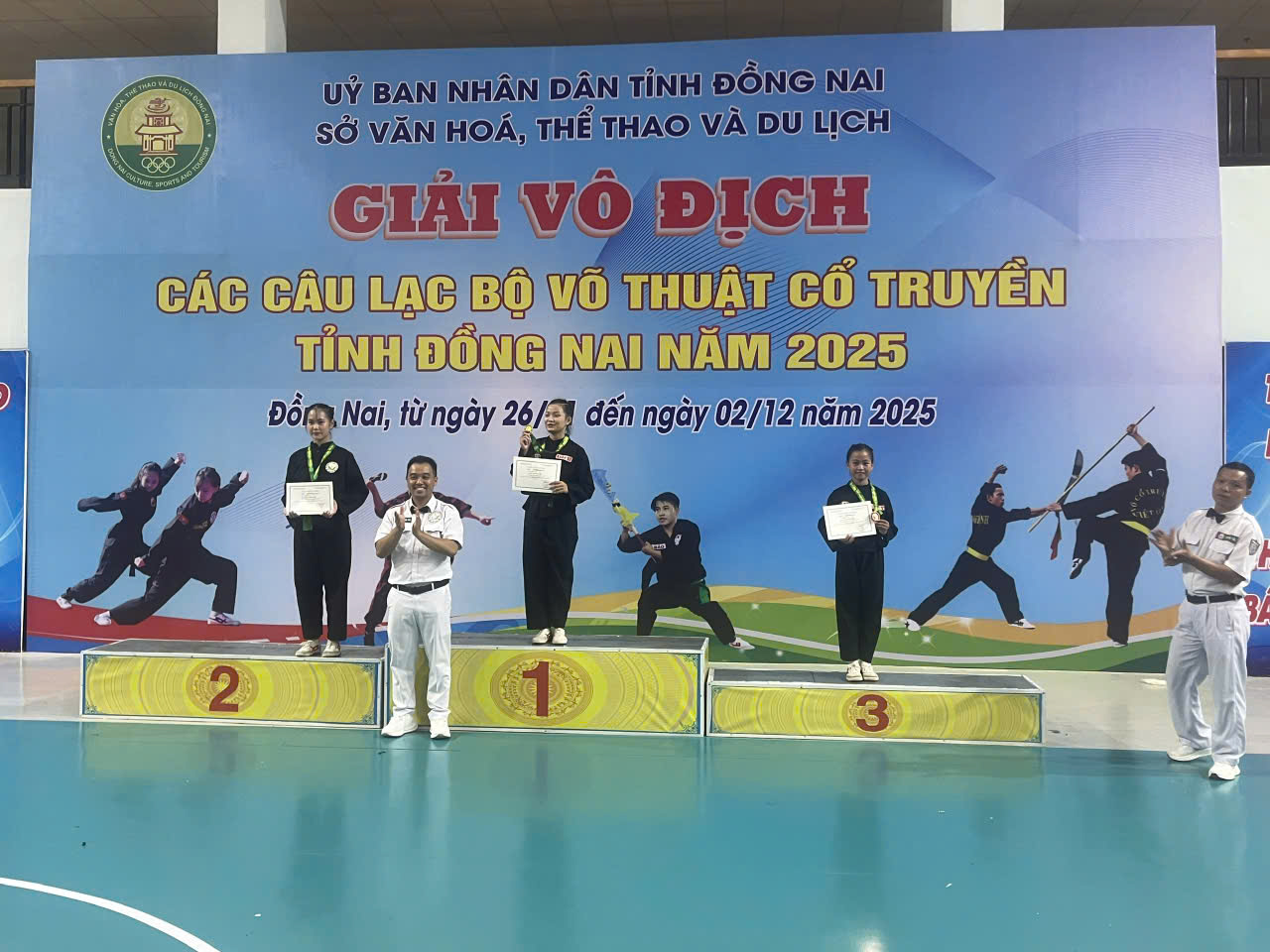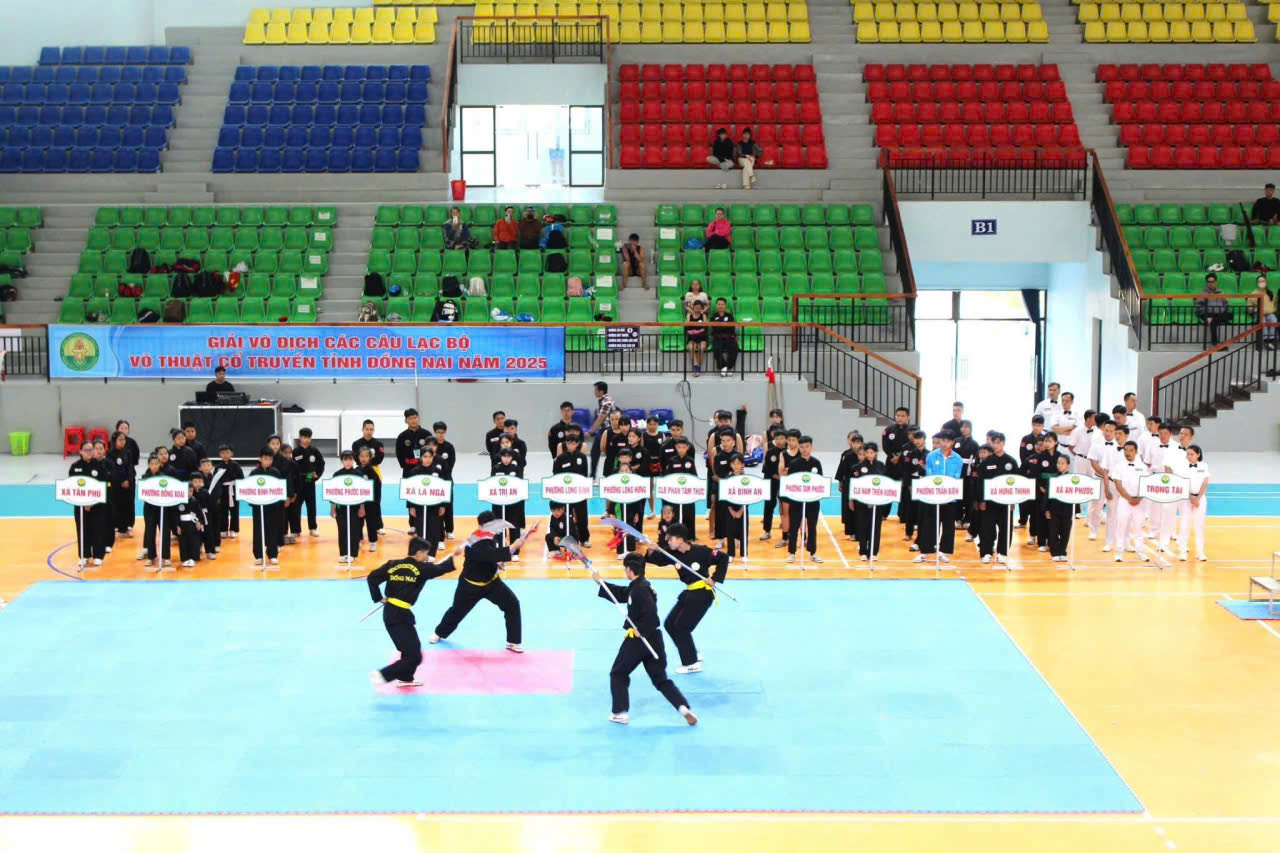 Giải vô địch các Câu lạc bộ Võ thuật cổ truyền tỉnh Đồng Nai năm 2025 đã khép lại vào tối 30/11 sau 4 ngày tranh tài sôi nổi tại Nhà thi đấu Trung tâm Huấn luyện và Thi đấu Thể dục Thể thao tỉnh (cơ sở 2, phường Bình Phước).