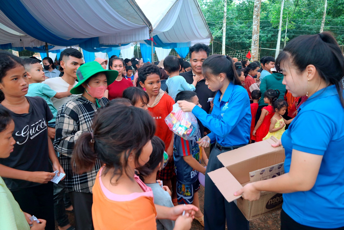 Ban tổ chức đã trao tặng 400 phần quà Trung thu gồm bánh, kẹo, lồng đèn, đã mang đến cho thiếu nhi một đêm hội đầy ắp tiếng cười
