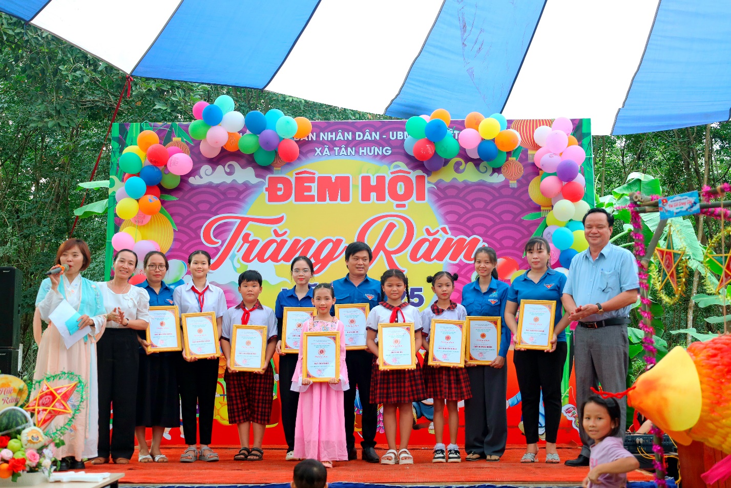 Ngoài ra, Ban tổ chức đã trao tặng 400 phần quà Trung thu gồm bánh, kẹo, lồng đèn, đã mang đến cho thiếu nhi một đêm hội đầy ắp tiếng cười. Đây là hoạt động thiết thực, thể hiện sự quan tâm của cấp ủy, chính quyền và các đoàn thể trong việc chăm lo đời sống tinh thần, góp phần tạo động lực để các em nỗ lực học tập, rèn luyện.