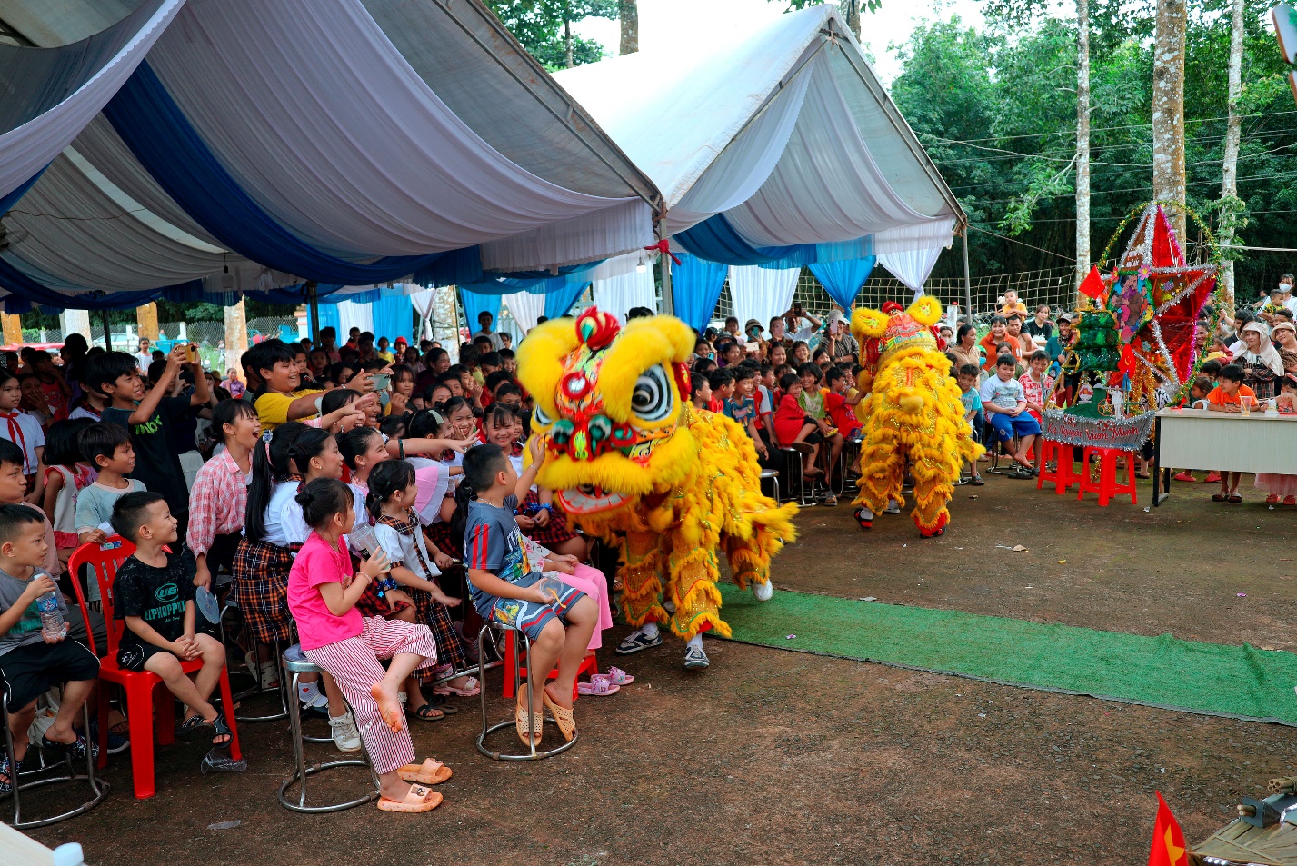 Chương trình còn có các tiết mục văn nghệ đặc sắc và màn múa lân truyền thống, mang đến không khí lễ hội sôi động.