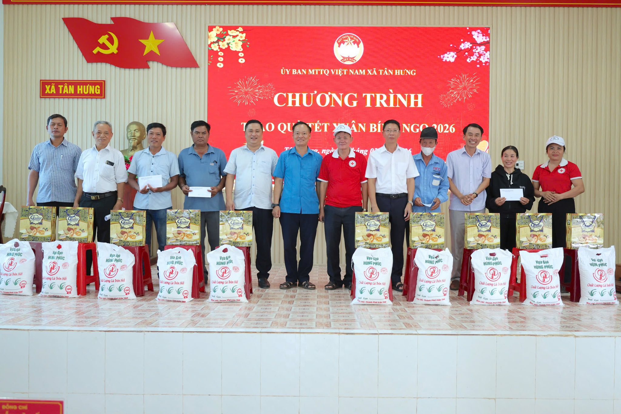 Trong Quý I/2026, cấp ủy, chính quyền và Ủy ban MTTQ Việt Nam xã Tân Hưng đã triển khai đồng bộ, hiệu quả nhiều hoạt động thiết thực nhằm chăm lo Tết Nguyên đán Bính Ngọ và bảo đảm an sinh xã hội, kiên quyết thực hiện mục tiêu "không để ai bị bỏ lại phía sau".