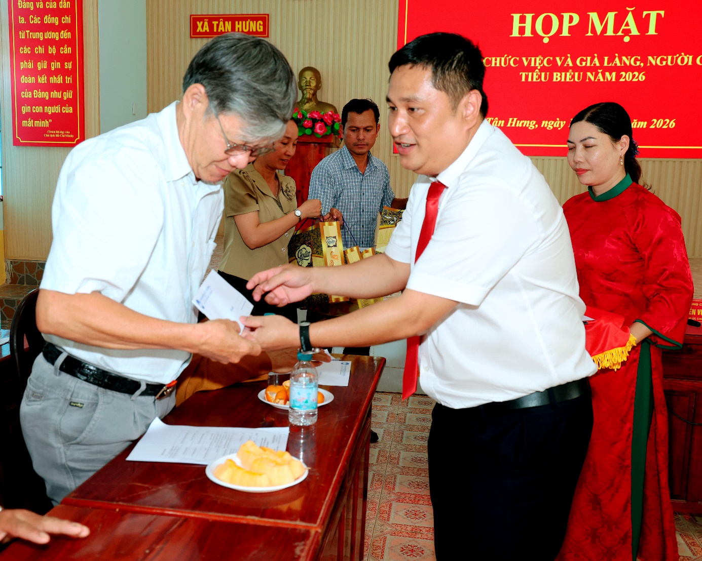 Nhân dịp này, Đảng ủy - HĐND - UBND - Ủy ban MTTQ Việt Nam xã Tân Hưng đã trao tặng những phần quà ý nghĩa cho các già làng, người có uy tín. Đây là sự quan tâm, động viên kịp thời của hệ thống chính trị địa phương, tri ân những cống hiến thầm lặng mà quan trọng của đội ngũ này đối với sự nghiệp xây dựng quê hương.