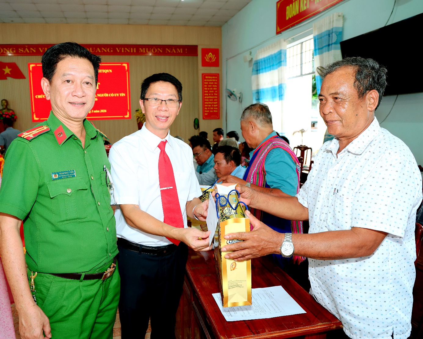 Tham dự buổi họp mặt có đồng chí Mạc Đình Huấn – Bí thư Đảng ủy, Chủ tịch HĐND xã; đồng chí Nguyễn Vũ Tiến – Phó Bí thư Đảng ủy, Chủ tịch UBND xã. Cùng dự có các đồng chí trong Ban Thường vụ, Ban Chấp hành Đảng ủy, lãnh đạo Ủy ban MTTQ Việt Nam xã, trưởng các cơ quan chuyên môn cùng 40 đại biểu là các vị chức sắc, chức việc, già làng và người có uy tín tiêu biểu.