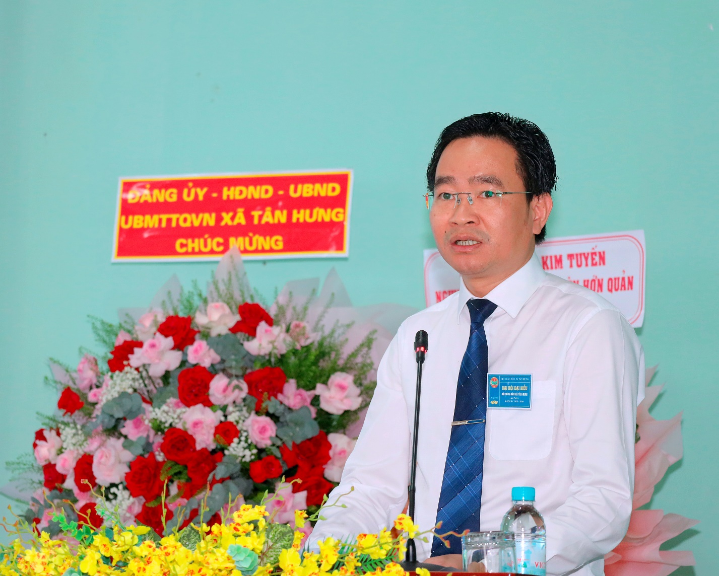 Đại hội đã công bố quyết định của Hội Nông dân tỉnh về việc chỉ định Ban Chấp hành Hội Nông dân xã Tân Hưng khóa I gồm 29 ủy viên; đồng chí Nguyễn Văn Thịnh được chỉ định giữ chức Chủ tịch Hội Nông dân xã Tân Hưng, nhiệm kỳ 2025–2030.