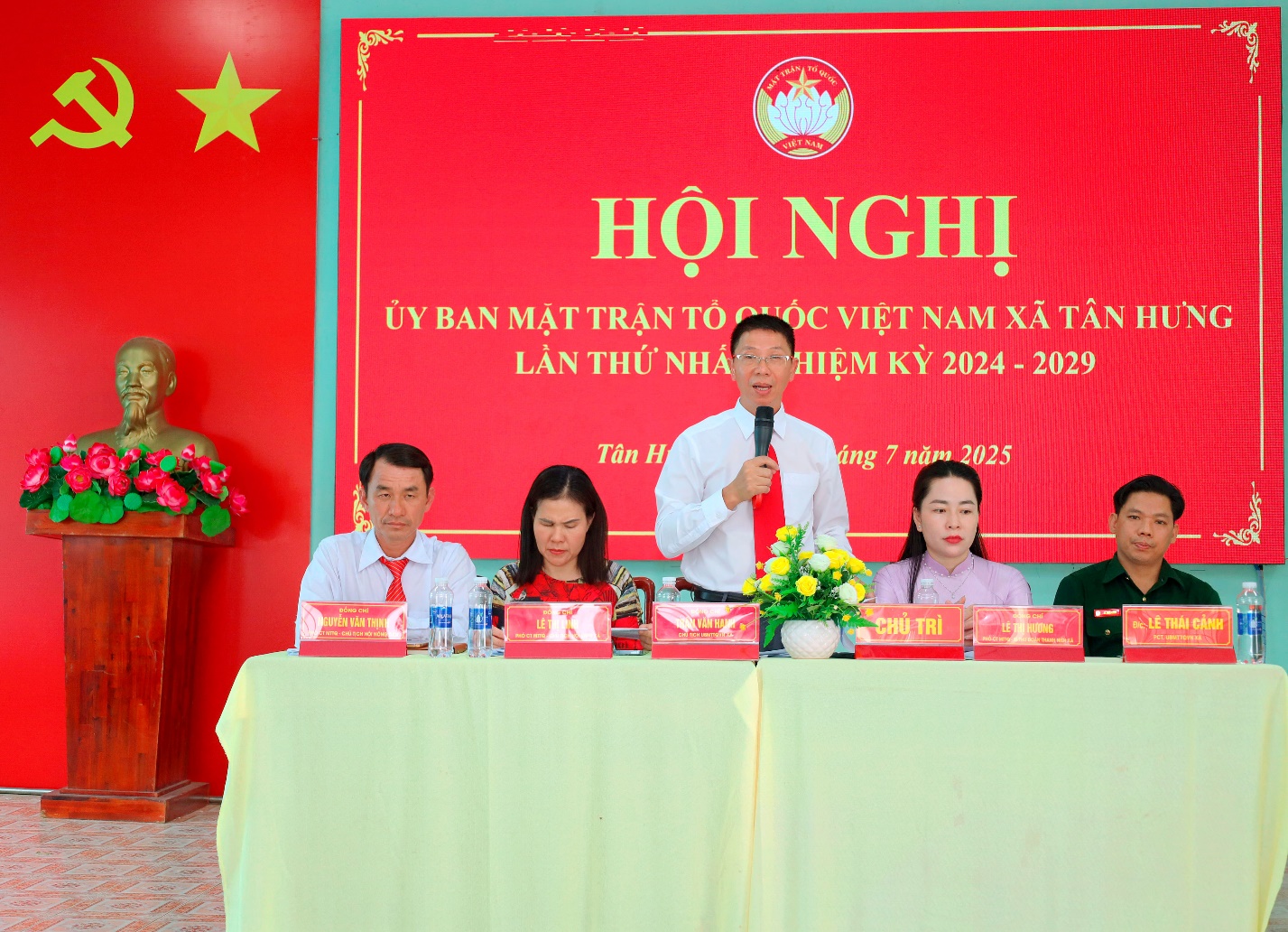 Ông Trần Văn Hanh - Chủ tịch Ủy ban Mặt trận Tổ quốc Việt Nam xã Tân Hưng, cùng ban Chủ trì điều hành Hội nghị