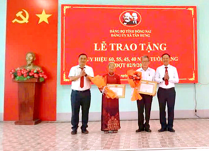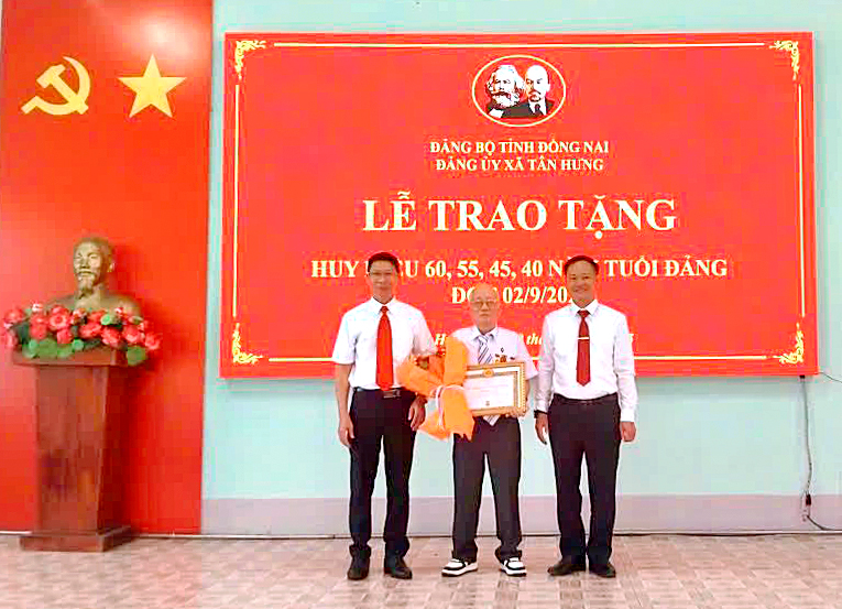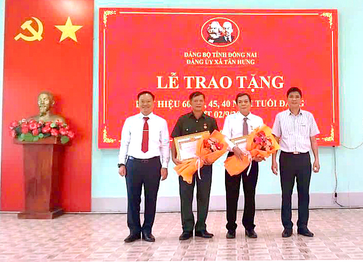 Theo đó, Huy hiệu 60 năm tuổi Đảng được trao cho đồng chí Đoàn Thị Mênh (Chi bộ ấp Thanh Sơn) và đồng chí Trương Hữu Nghĩa (Chi bộ ấp Sóc Ruộng). Huy hiệu 55 năm tuổi Đảng được trao cho đồng chí Phạm Hữu Ngạn (Chi bộ Địa Hạt – Sóc Dầm). Huy hiệu 45 năm tuổi Đảng được trao cho đồng chí Lê Thanh Chiến (Chi bộ Thuận An) và đồng chí Tô Vĩnh Súng (Chi bộ ấp Thanh Sơn). Huy hiệu 40 năm tuổi Đảng được trao cho đồng chí Phạm Văn Tịnh (Chi bộ Trà Thanh – Lồ Ô).
